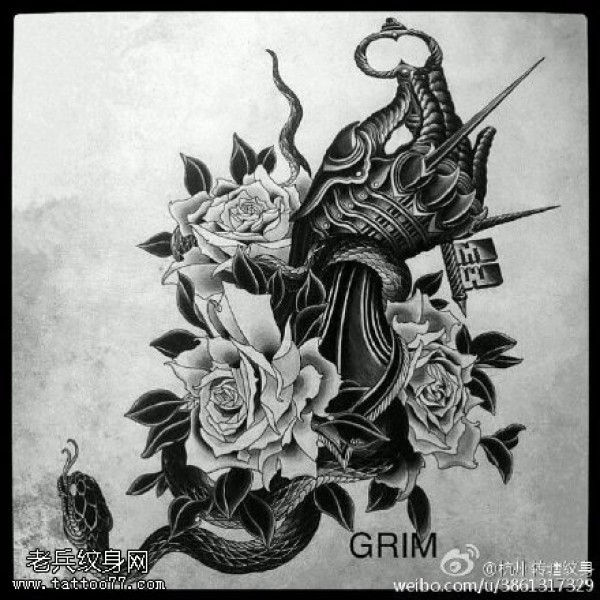 手稿玫瑰花钻戒蛇纹身图案