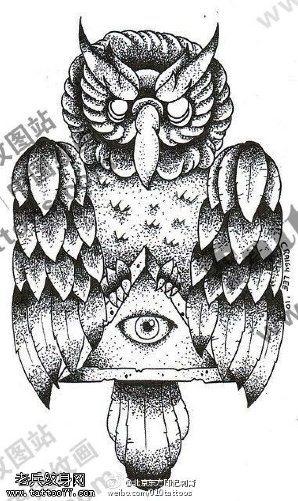 经典猫头鹰三角眼纹身图案