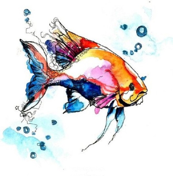 水彩纹身鱼手稿素材欣赏