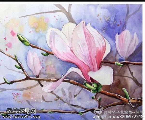 水彩风纯洁高雅的玉兰花纹身图案
