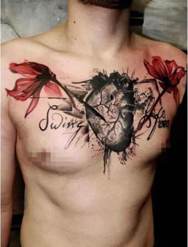 男士胸前的一组大花胸纹身图片欣赏