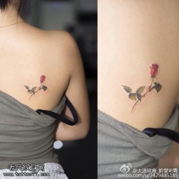 女生肩花纹身_15张女性双肩对称的肩花纹身图案作品图片