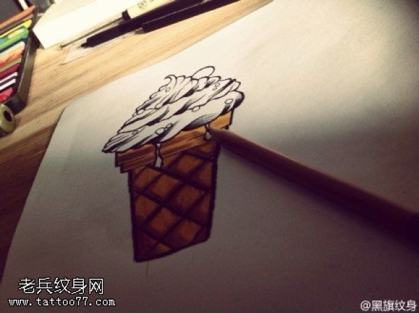手稿冰激凌纹身图案