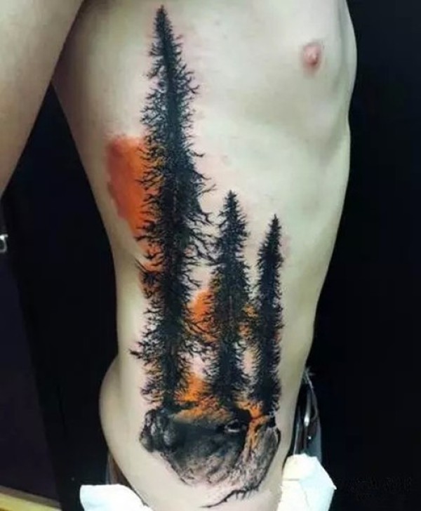 绿色 希望 侧腰大树纹身
