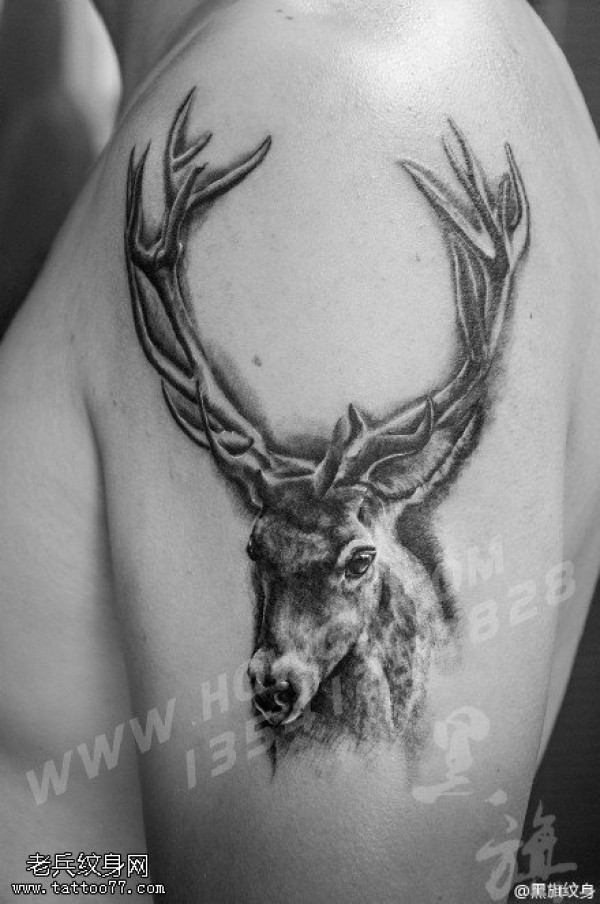 肩膀经典灵鹿纹身图案