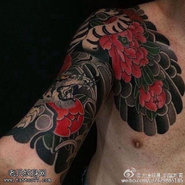 后肩唯美花藤英文图案图片_植物纹身图案大全_纹身图吧