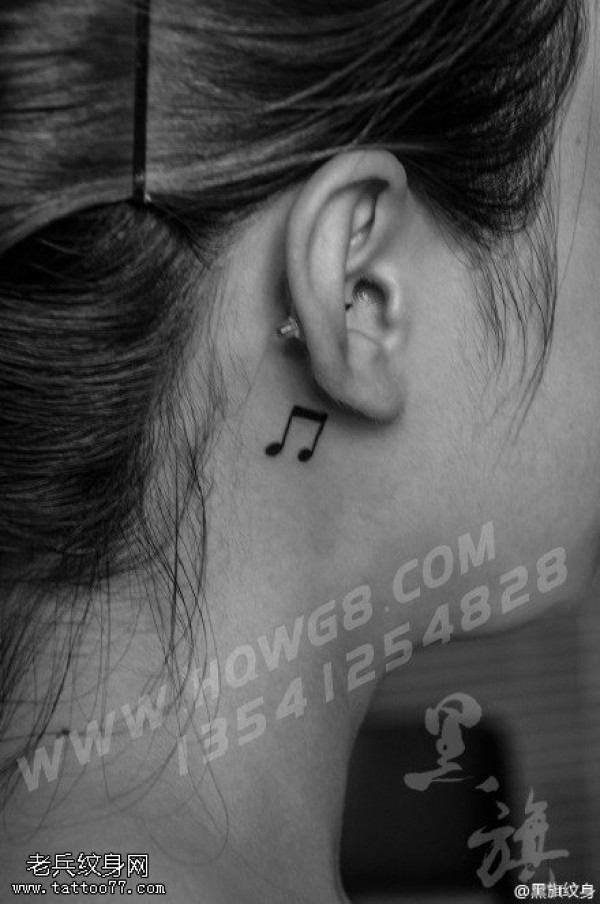 耳朵上后的小音符纹身图案