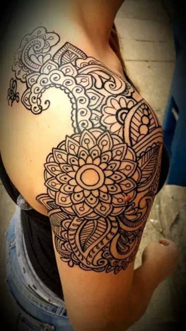 女生肩花纹身_15张女性双肩对称的肩花纹身图案作品图片