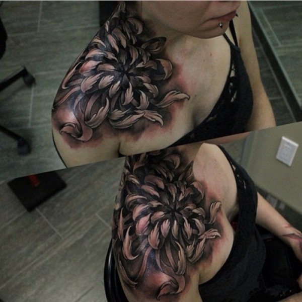 女生肩花纹身_15张女性双肩对称的肩花纹身图案作品图片