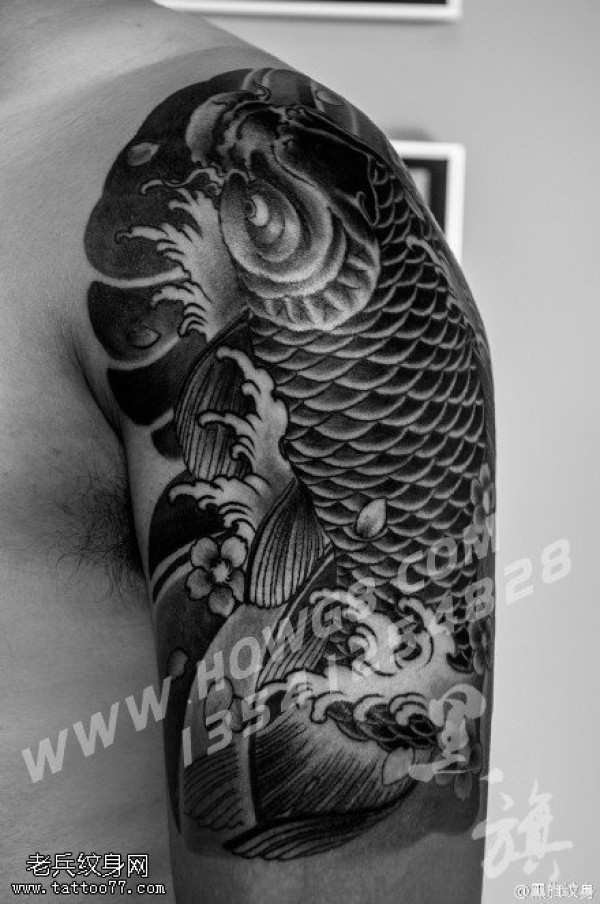 肩膀经典锦鲤纹身图案