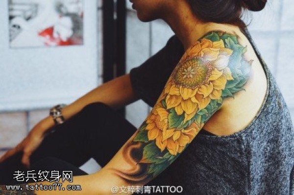 女生肩花纹身_15张女性双肩对称的肩花纹身图案作品图片