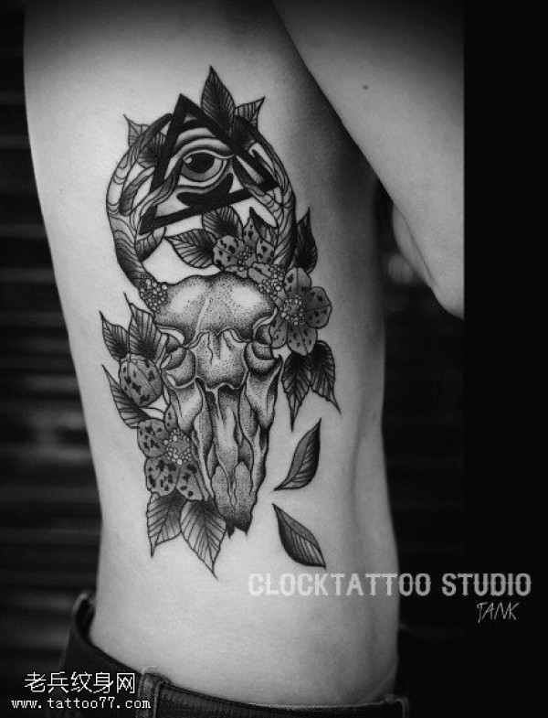 侧腰女骷髅刺青图案图片_骷髅纹身图案大全_纹身图吧
