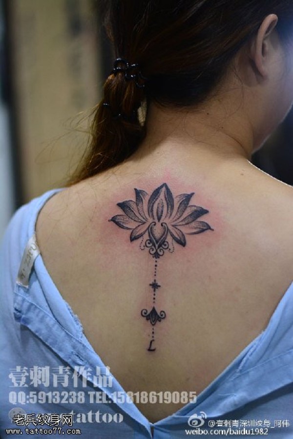 背部莲花座纹身图案