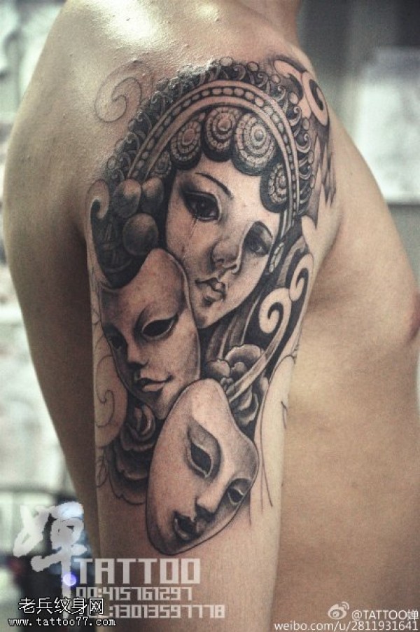 能面万媚纹身手稿_52张日式能剧面具纹身手稿图案素材欣赏