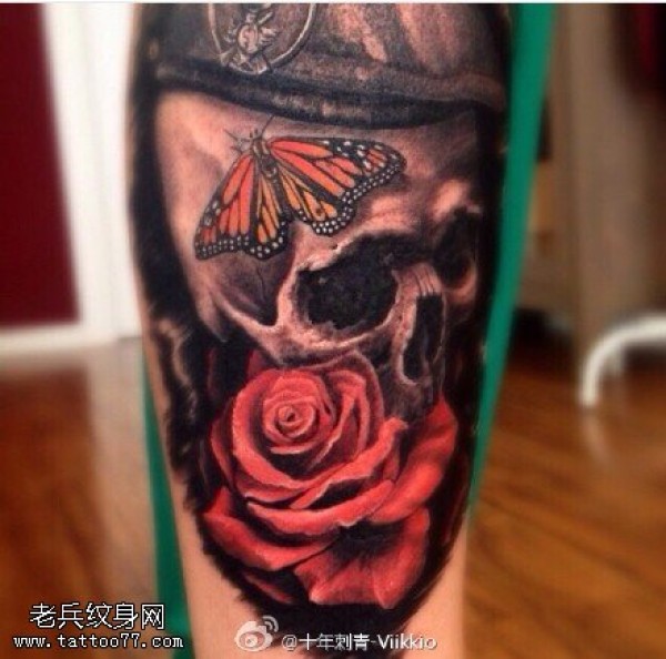 经典骷髅蝴蝶玫瑰纹身图案