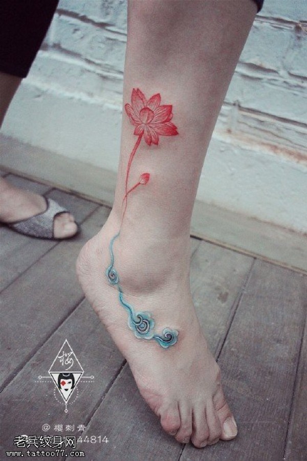 分享一款脚踝莲花纹身图案_脚部纹身图案大全_纹身图吧