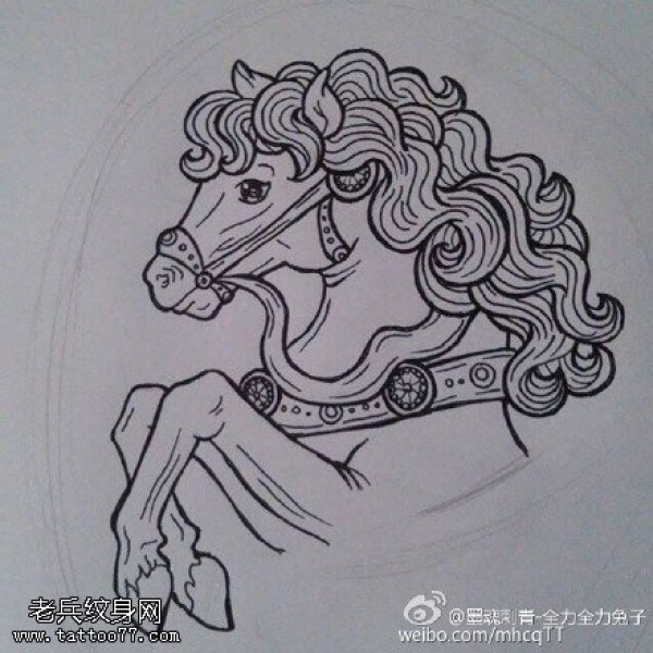 手稿奔驰的骏马纹身图案