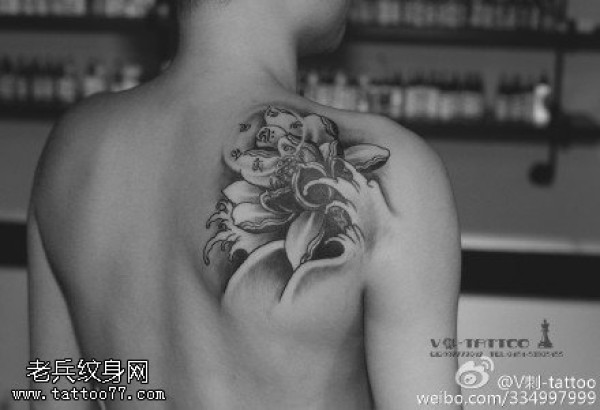 女生肩花纹身_15张女性双肩对称的肩花纹身图案作品图片
