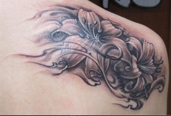 后肩唯美花藤英文图案图片_植物纹身图案大全_纹身图吧