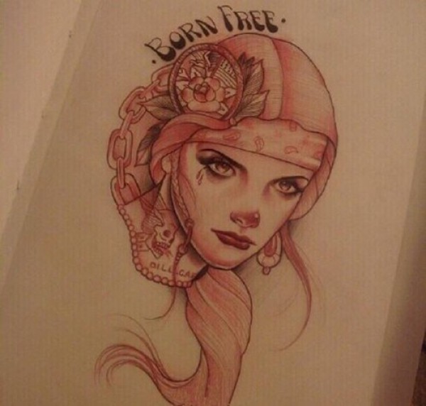 彩色人物肖像纹身手稿