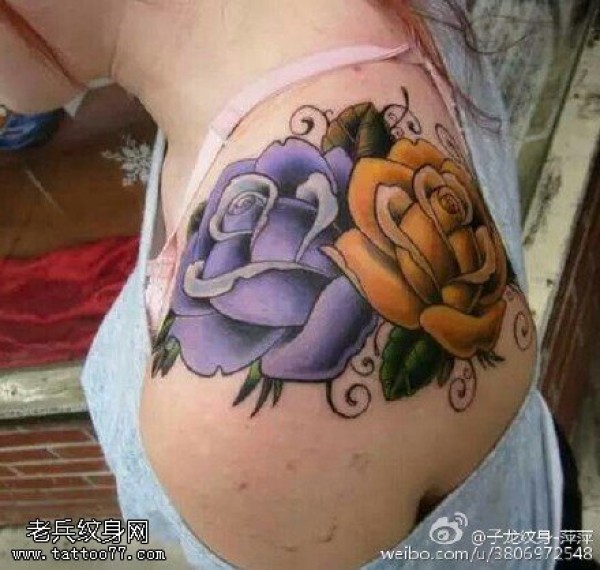 女生肩花纹身_15张女性双肩对称的肩花纹身图案作品图片