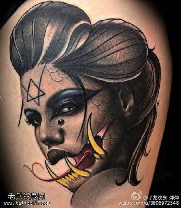 女性肩部肖像刺青_肖像纹身图案大全_纹身图吧