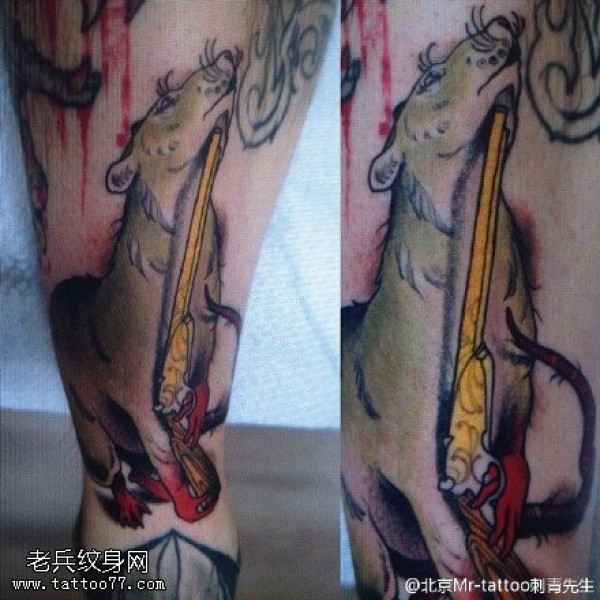 花腿纹身--一组大黑腿纹身图案作品欣赏