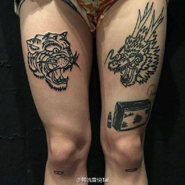 传统花腿纹身--18张传统风格的大花腿纹身图案作品