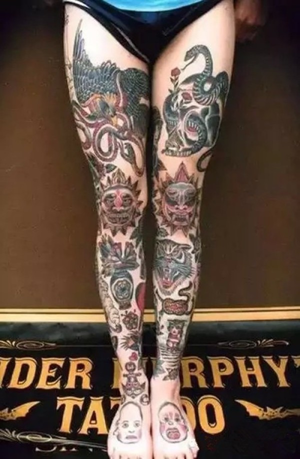 传统花腿纹身--18张传统风格的大花腿纹身图案作品