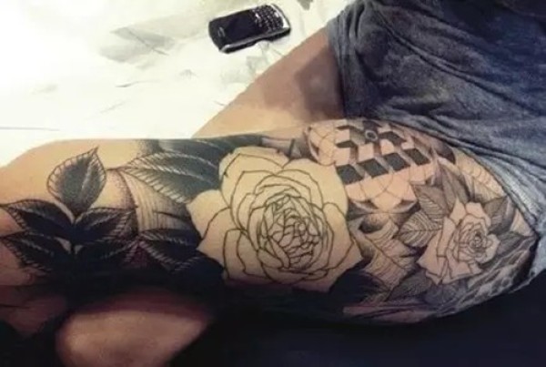 传统花腿纹身--18张传统风格的大花腿纹身图案作品