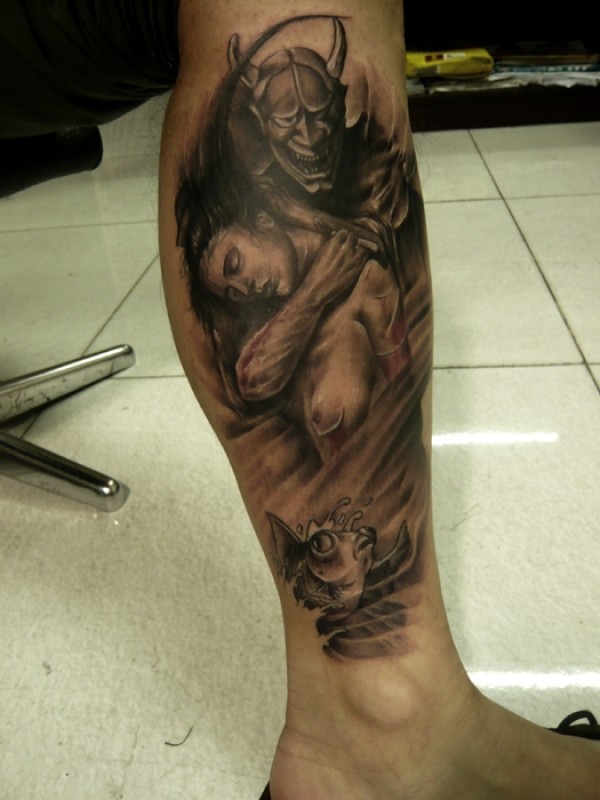手臂黑灰象神_一组12张手臂上的黑灰象神纹身图案作品欣赏