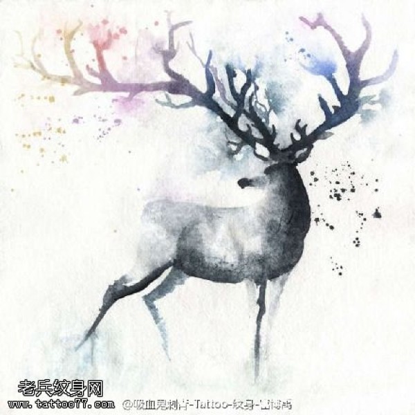 经典水墨灵鹿纹身图案