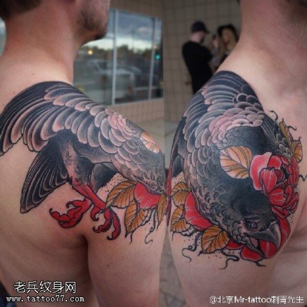 女生肩花纹身_15张女性双肩对称的肩花纹身图案作品图片