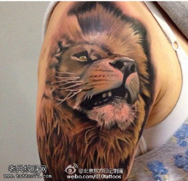肩膀的狮子纹身图案