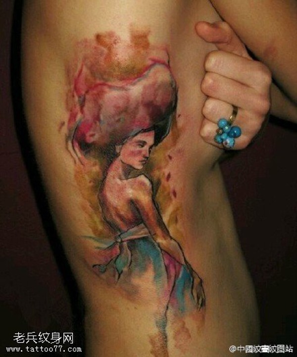 胸侧水墨的美女纹身图案
