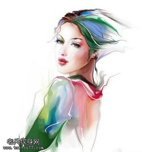 水彩知性的女性纹身图案
