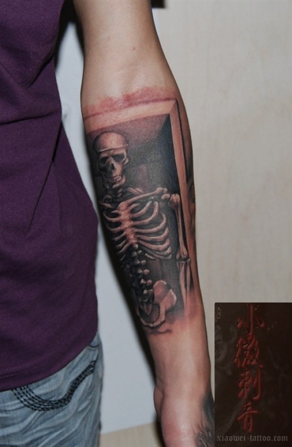 个性手臂悲伤的骷髅纹身图案图案图片_骷髅纹身图案大全_纹身图吧