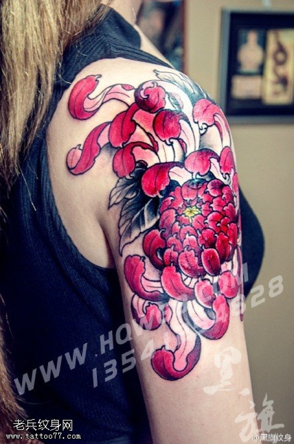 肩膀大菊花纹身图案