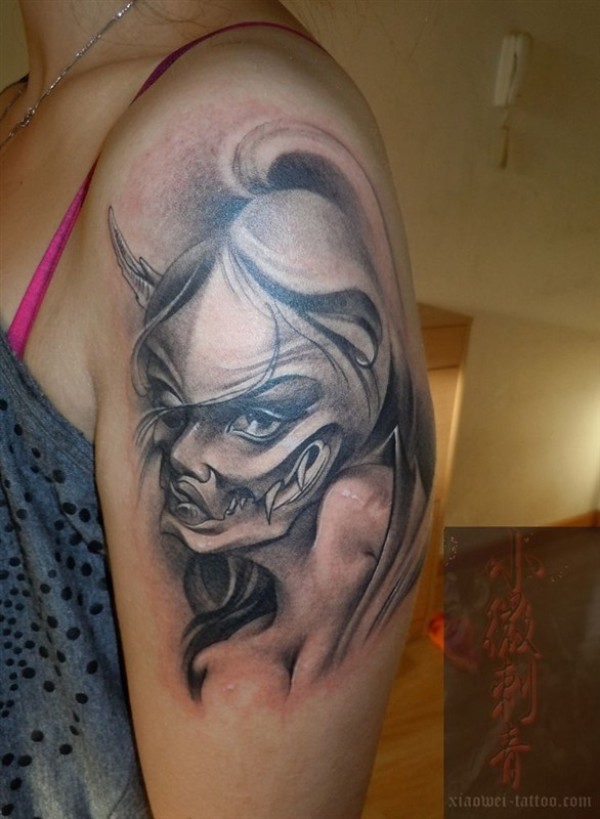 能面万媚纹身手稿_52张日式能剧面具纹身手稿图案素材欣赏