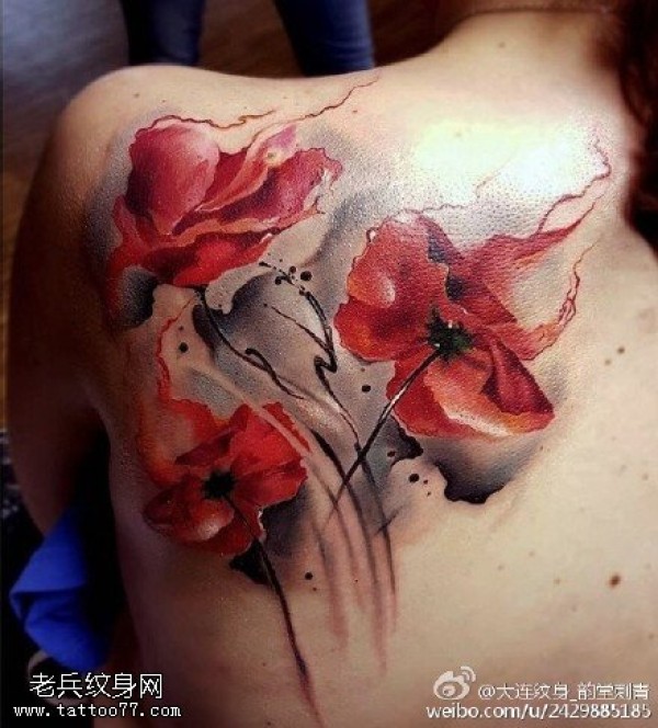 女生肩花纹身_15张女性双肩对称的肩花纹身图案作品图片