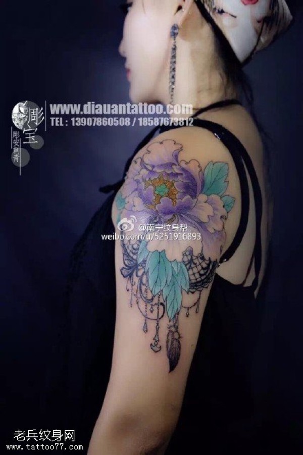 后肩唯美花藤英文图案图片_植物纹身图案大全_纹身图吧