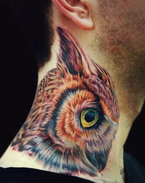男人脖子彩色燕子刺青图案图片_脖子纹身图案大全_纹身图吧