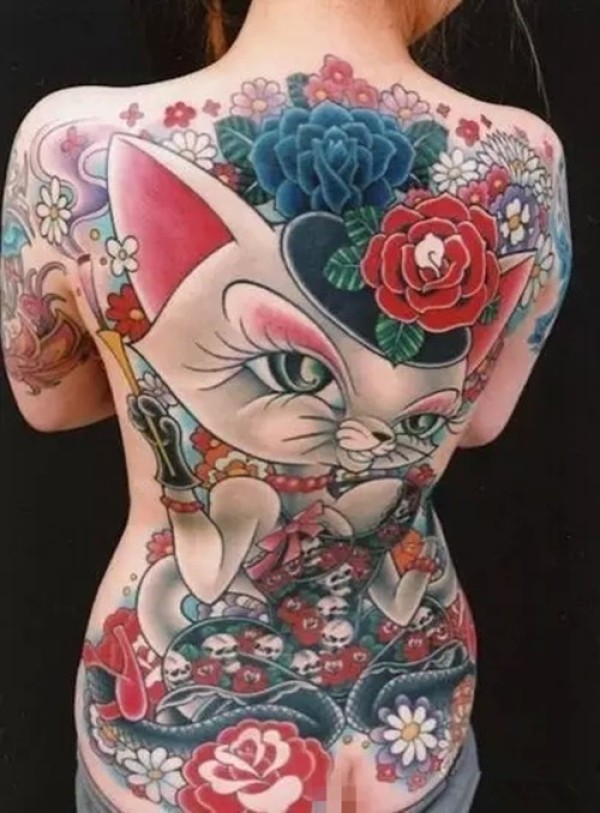 性感女生满背创意文身作品