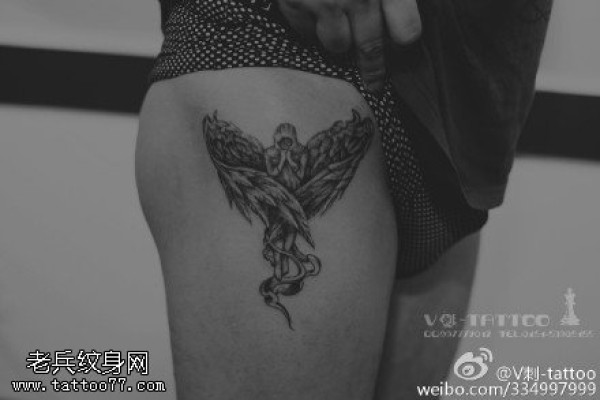 大腿上的天使纹身图案