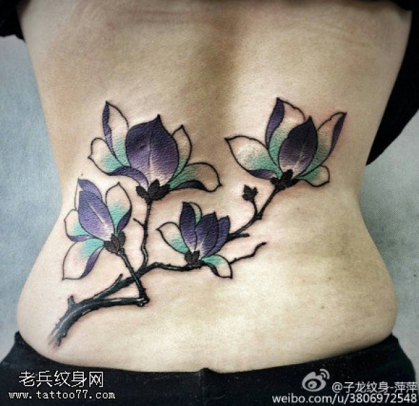 腰间漂亮的玉兰花纹身图案
