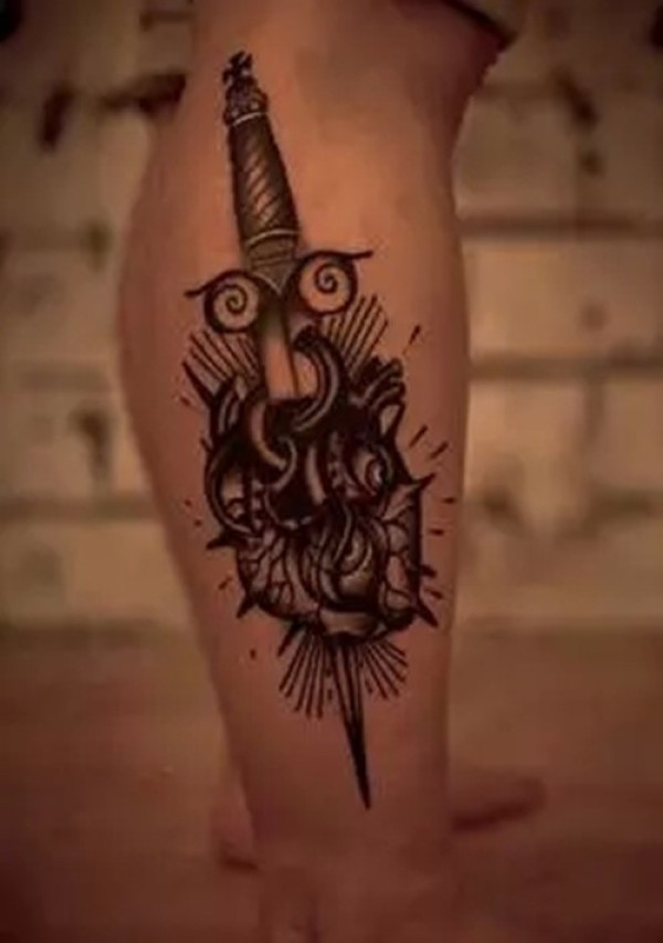 花腿纹身--一组大黑腿纹身图案作品欣赏