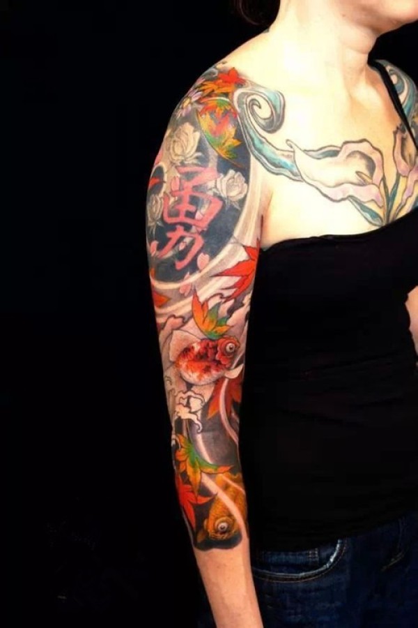 美眉们的漂亮花臂纹身