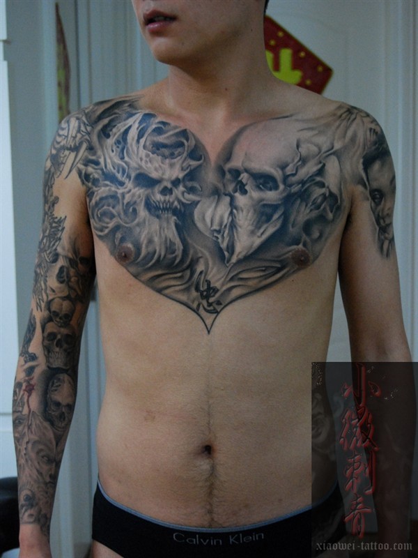 纹身|北京纹身|骷髅纹身 前胸纹身|小微刺青