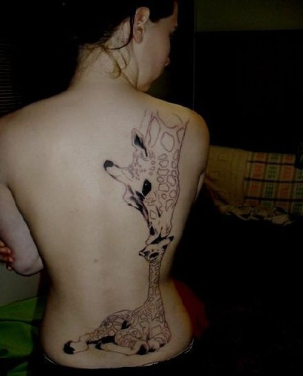 腰背部大气的长颈鹿纹身