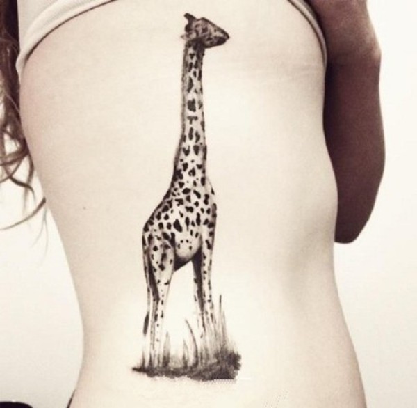 女生后腰纹身黑白灰风格抽象线条纹身图案